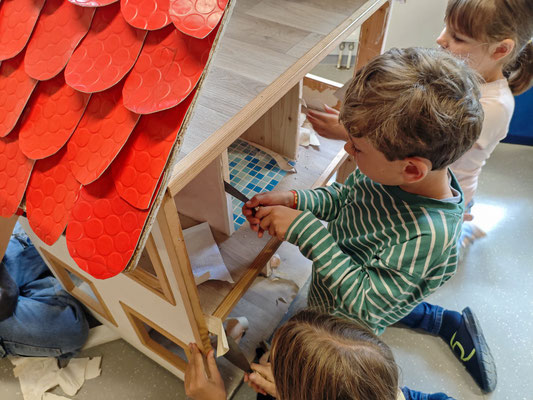 Auch wenn wir weiter versuchen viel Zeit an der frischen Luft zu verbringen, macht uns das Wetter manchmal ein Strich durch die Rechnung. Doch wenn es draußen schüttet, machen wir es uns drin gemütlich und nutzen die Zeit um viele kreativite Projekte zu starten. Wir basteln Flechtritter, bauen Kreuzschiffe aus Lego, filzen, machen Schneeflocken und machen viele andere tolle Sachen. Winter ist Bastelzeit bei uns! Und natürlich darf auch unser Olaf nicht fehlen.